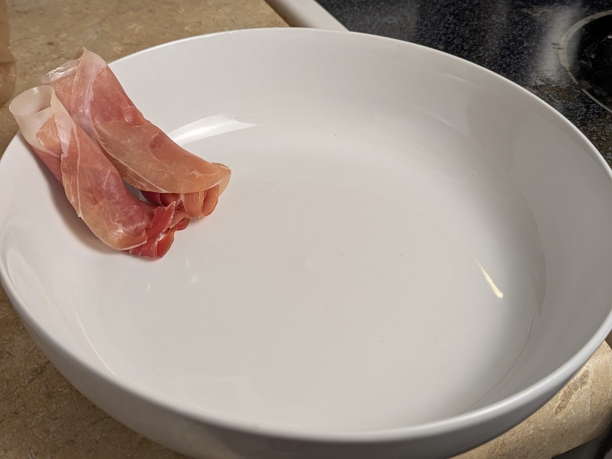 I did have a little fun with plating. I started off by rolling up a couple sheets of prosciutto because, as anyone can tell you, adding more meat is always a good idea.